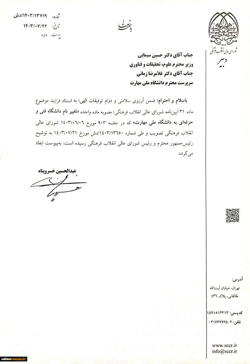 امتیاز دهید : توسط رئیس جمهور ابلاغ شد: ماده واحده تغییر نام «دانشگاه فنی و حرفهای» به «دانشگاه ملی مهارت» 2 سهشنبه 24 مهر 1403 ساعت 8:20