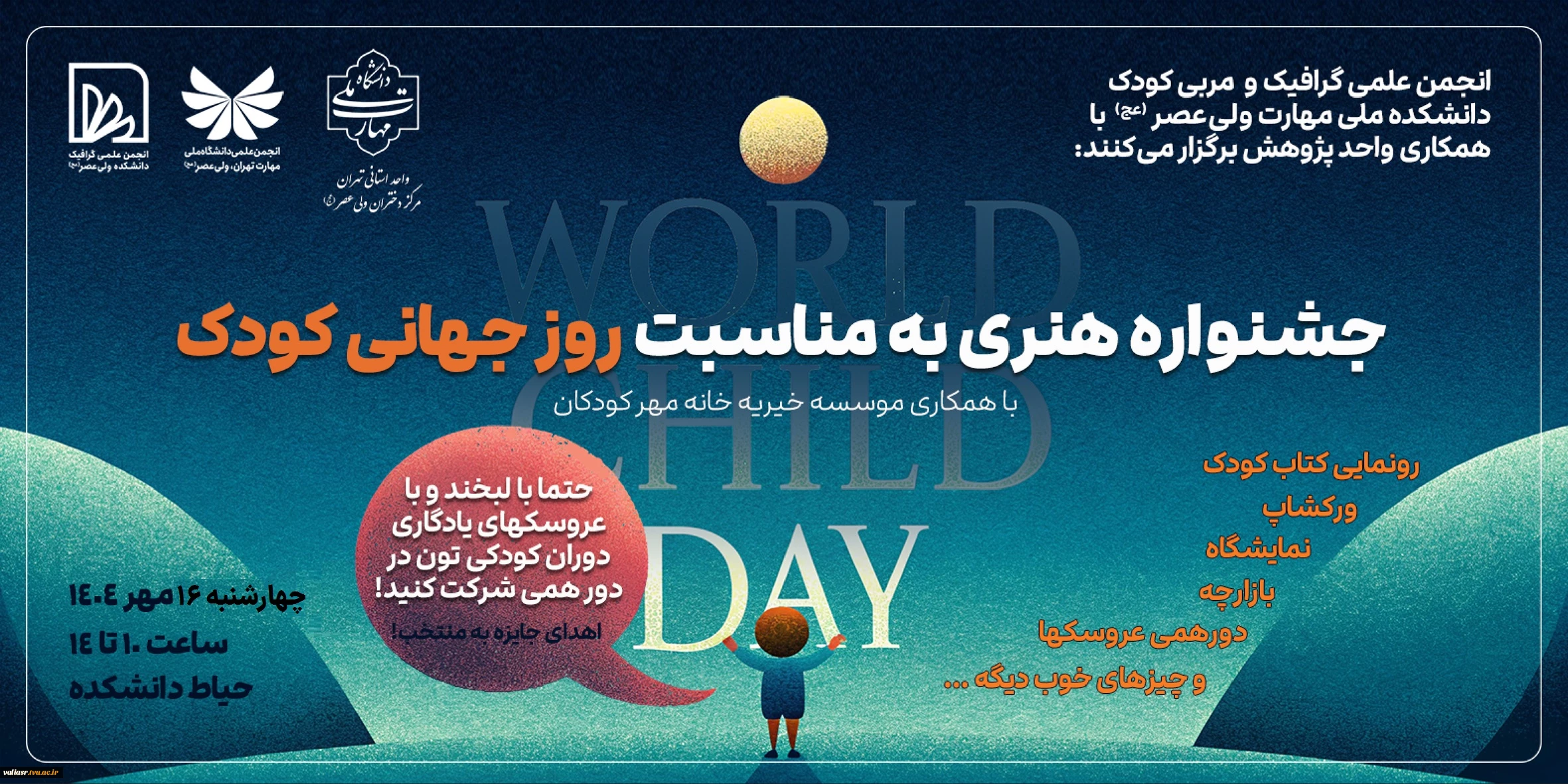 امتیاز دهید : رویداد هنری روز جهانی کودک در دانشکده ولی عصر(عج) برگزار می گردد 2 دوشنبه 14 مهر 1404 ساعت 14:30
