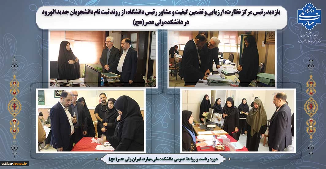 امتیاز دهید : بازدید رئیس مرکز نظارت، ارزیابی و تضمین کیفیت و مشاور رئیس دانشگاه، از روند ثبت نام دانشجویان جدید الورود در دانشکده ولی عصر(عج) 2 یکشنبه 20 مهر 1404 ساعت 15:01