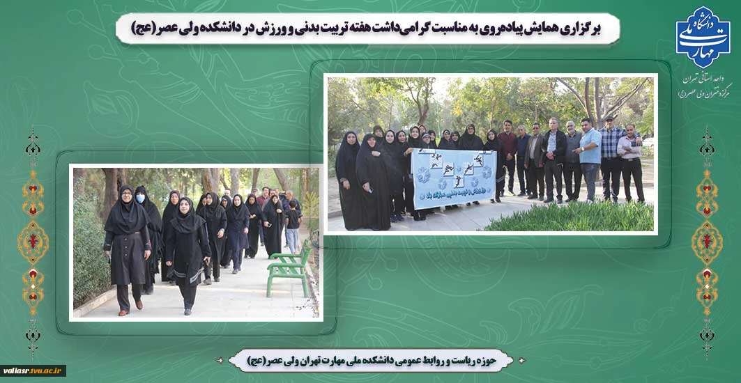 امتیاز دهید : برگزاری همایش پیادهروی به مناسبت گرامیداشت هفته تربیت بدنی و ورزش در دانشکده ولی عصر(عج) 2 شنبه 10 آبان 1404 ساعت 9:47
