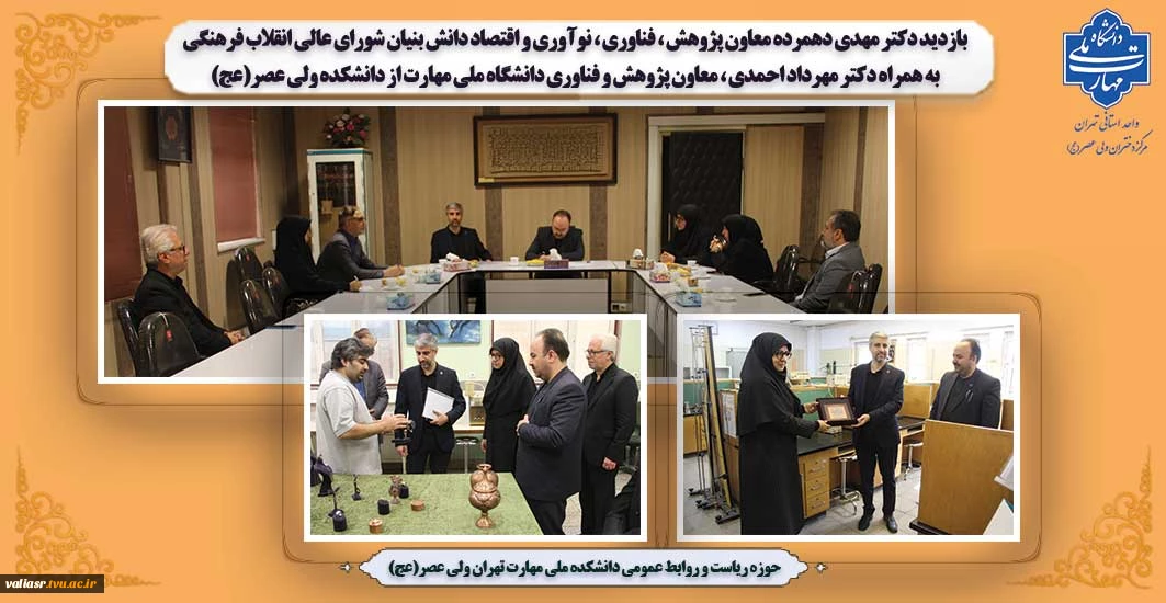 امتیاز دهید : بازدید دکتر مهدی دهمرده معاون پژوهش ، فناوری ، نوآوری و اقتصاد دانش بنیان شورای عالی انقلاب فرهنگی به همراه دکتر مهرداد احمدی ، معاون پژوهش و فناوری دانشگاه ملی مهارت از دانشکده ولی عصر(عج) 2 چهارشنبه 14 آبان 1404 ساعت 14:42