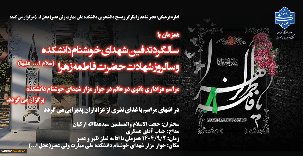 مراسم عزاداری بانوی دو عالم همزمان با سالگرد تدفین شهدای خوشنام دانشکده و سالروز شهادت حضرت فاطمه زهرا (سلام ا... علیها) برگزار می گردد 2