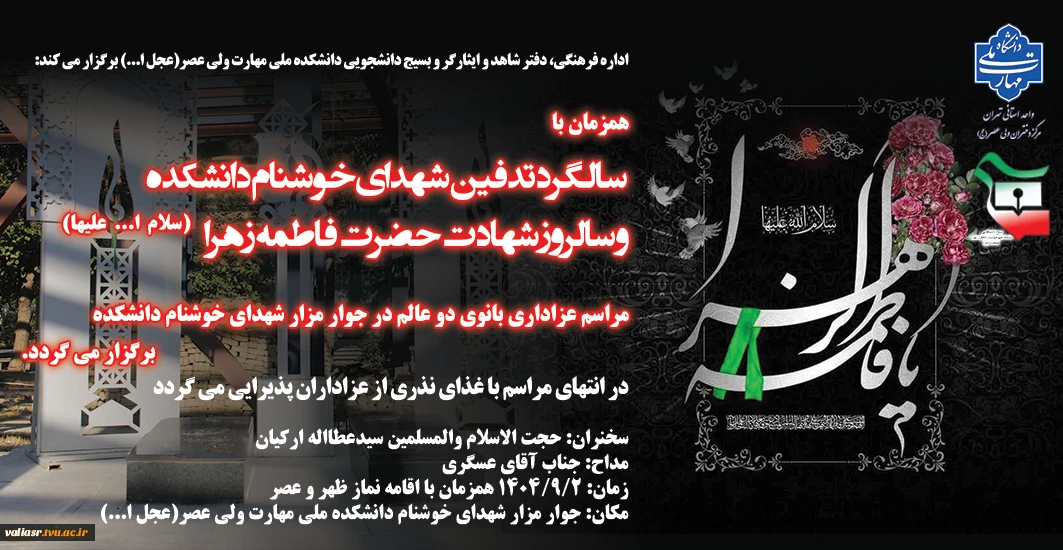 مراسم عزاداری بانوی دو عالم همزمان با سالگرد تدفین شهدای خوشنام دانشکده و سالروز شهادت حضرت فاطمه زهرا (سلام ا... علیها) برگزار می گردد 2