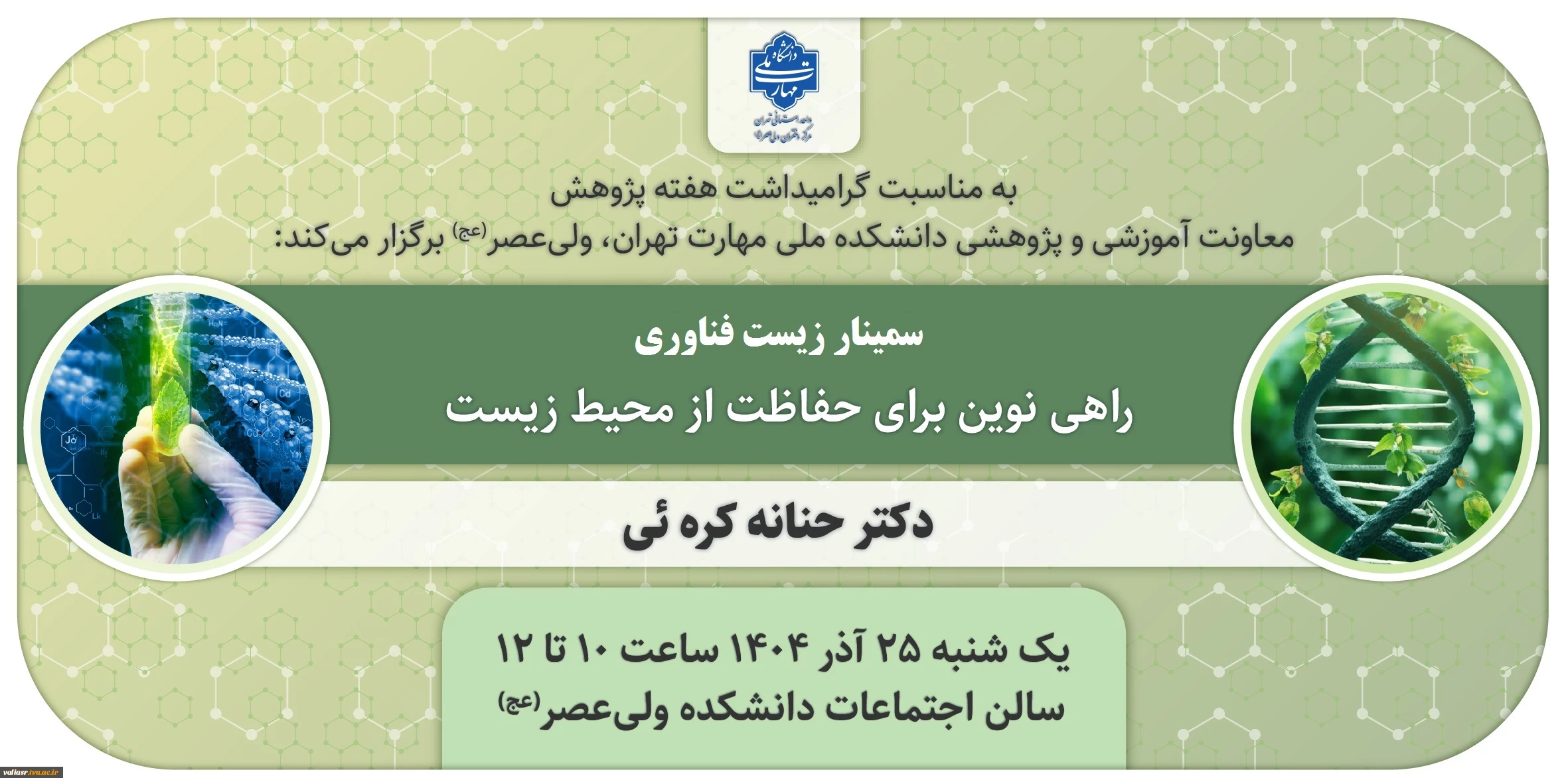 امتیاز دهید : برگزاری سمینار " زیست فناوری، راهی نوین برای حفاظت از محیط زیست" 2 چهارشنبه 12 آذر 1404 ساعت 9:23