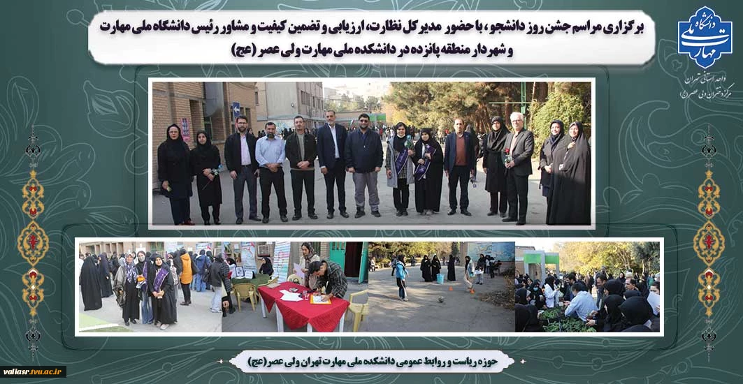 امتیاز دهید : برگزاری مراسم جشن روز دانشجو ، با حضور مدیرکل نظارت، ارزیابی و تضمین کیفیت و شهردار منطقه پانزده در دانشکده ملی مهارت ولی عصر (عج) 2 یکشنبه 16 آذر 1404 ساعت 11:25