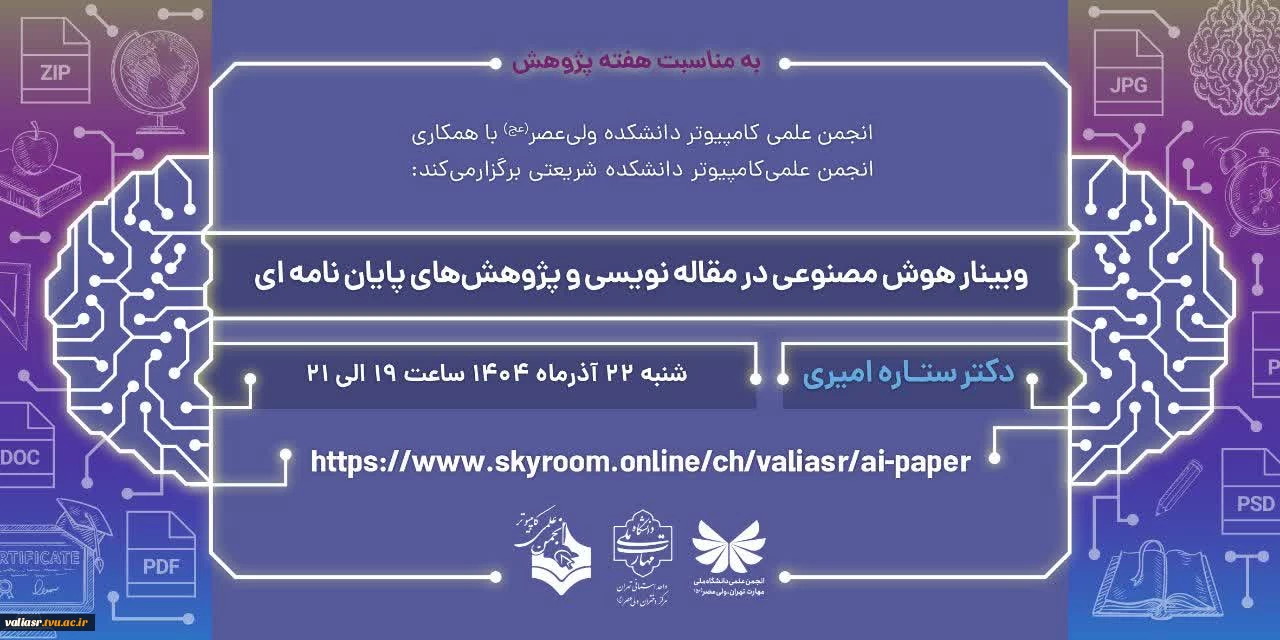 امتیاز دهید : برگزاری وبینار هوش مصنوعی در مقاله نویسی و پژوهشهای پایان نامه ای در دانشکده ملی مهارت ولی عصر(عج) 2 چهارشنبه 26 آذر 1404 ساعت 12:01