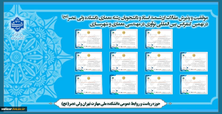 موفقیت و پذیرش مقالات ارزشمند استاد مهشاد بختیاری و دانشجویان رشته معماری دانشکده ولی عصر(عج) در نهمین کنفرانس بین المللی نوآوری در مهندسی معماری و شهرسازی 2