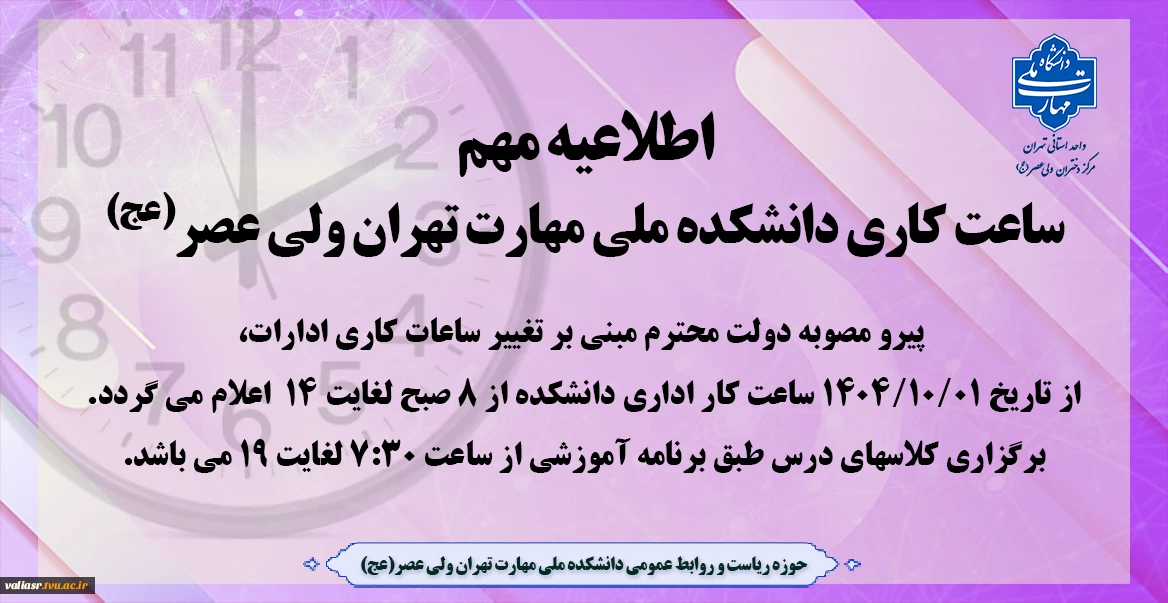 ساعت کاری دانشکده برای پاسخگویی به مراجعین محترم 2