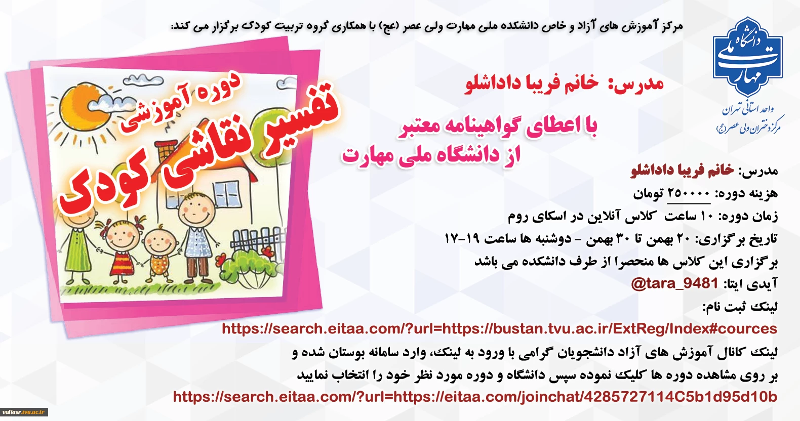 امتیاز دهید : برگزاری دوره آموزشی" تفسیر نقاشی کودک" در دانشکده ولی عصر(عج) 2 دوشنبه 8 دی 1404 ساعت 11:22