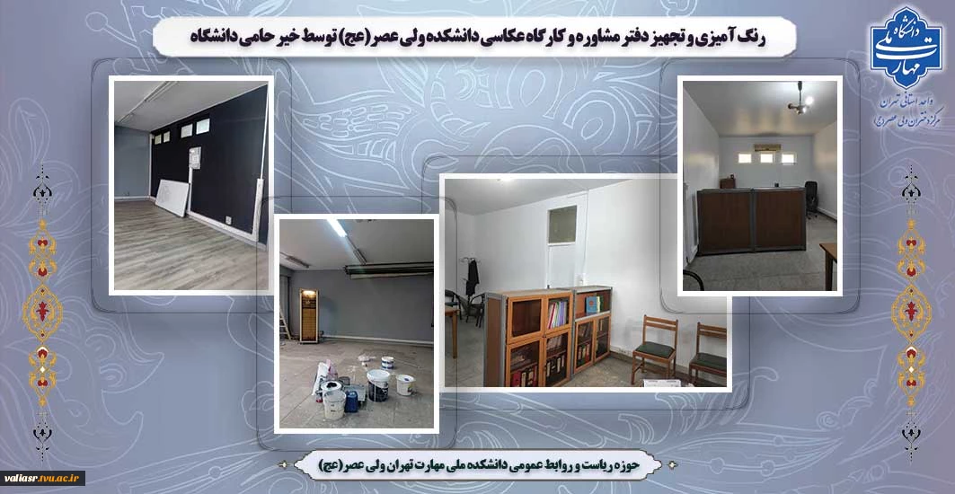 رنگ آمیزی و تجهیز دفتر مشاوره و کارگاه عکاسی دانشکده ولی عصر(عج) توسط خیر حامی دانشگاه 2